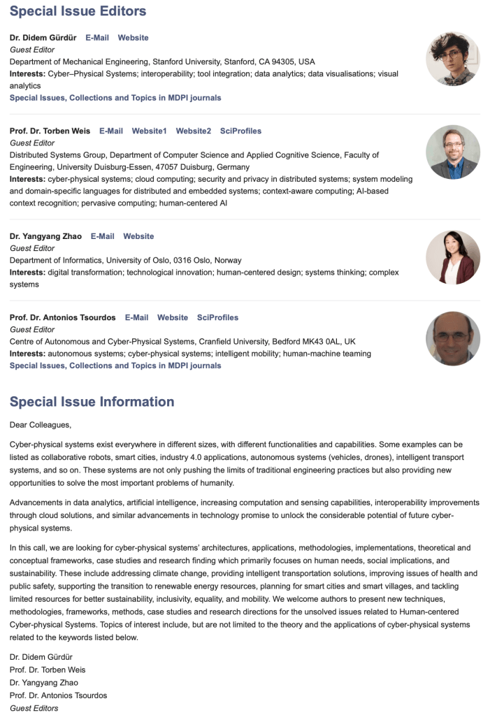 “#Humancentered Cyber-physical Systems” for Technologies of MDPI with Prof. Dr. Torben Weis, Dr. Yangyang Zhao and Prof. Dr. Antonios Tsourdos