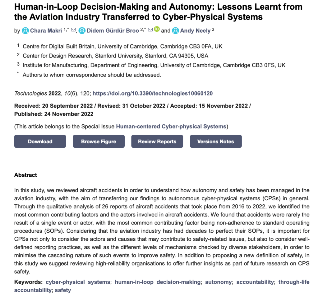 The article is called “Human-in-Loop Decision-Making and Autonomy: Lessons Learnt from the Aviation Industry Transferred to Cyber-Physical Systems”